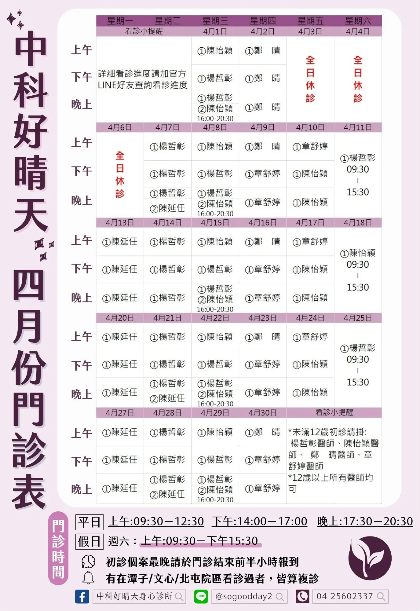 文心好晴天看診時間